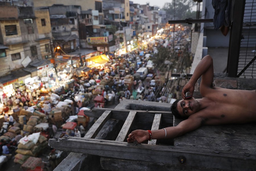 Read moreAn Indian laborer rests after work as push carts and cycle rickshaws make their way through a crowded street at the old quarters of New Delhi, India, on October 10, 2017. #