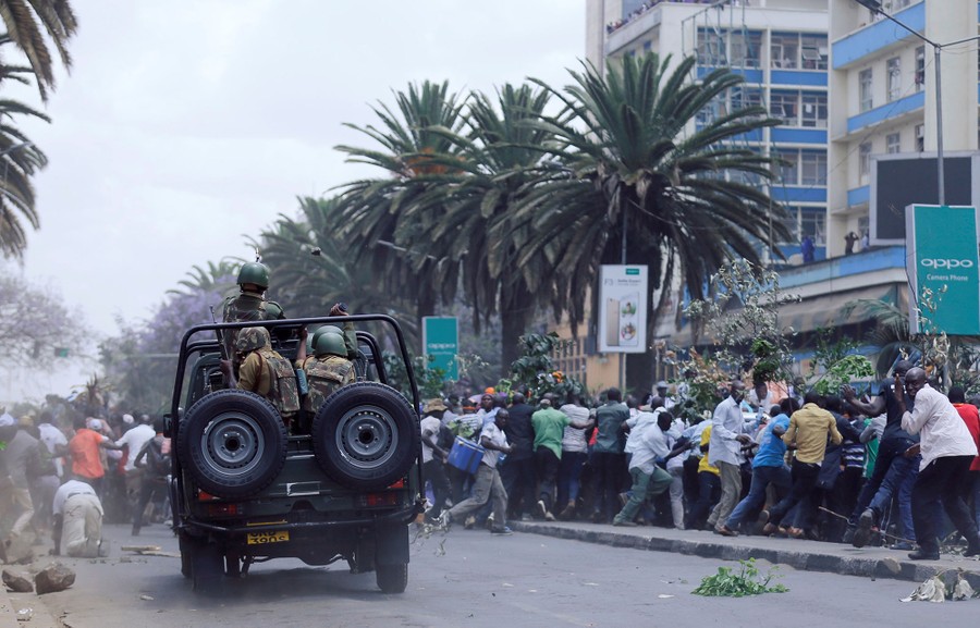 Read moreRiot policemen attempt to disperse supporters of the Kenyan opposition National Super Alliance (NASA) coalition, during a protest along a street in Nairobi, Kenya, on October 11, 2017. #