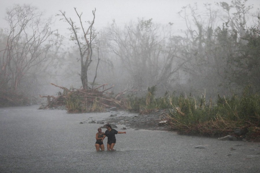 Read morePeople cross the Espiritu Santo river during heavy afternoon rains more than two weeks after Hurricane Maria hit the island, on October 8, 2017, in Palmer, Puerto Rico. At the time, only 11.7 percent of Puerto Rico's electricity had been restored and some residents were going to the river to cool off and relax while others went to bathe, wash clothes, or gather water. #