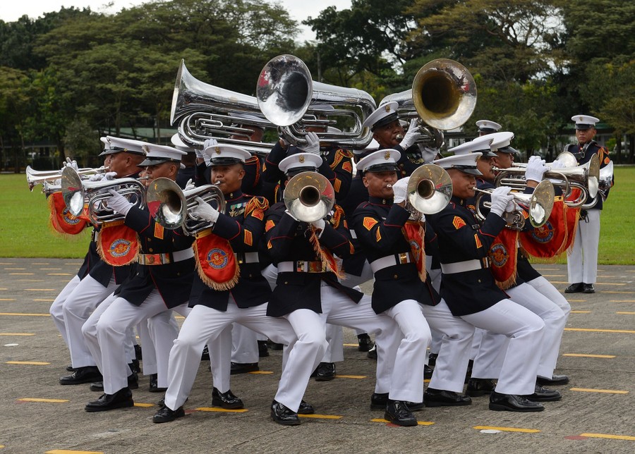 Read moreMembers of the Philippines military brass band perform during a ceremony marking the anniversary of the military at Camp Aguinaldo in Quezon City, Manila, on December 20, 2017, attended by President Rodrigo Duterte. #
