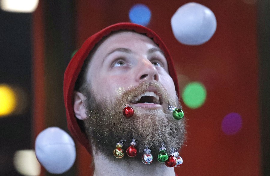 Read moreNikolai Vasilyev, 64, dressed as Father Frost, the Russian equivalent of Santa Claus, water-skis along the Yenisei River outside the Siberian city of Krasnoyarsk, Russia, on December 19, 2017. Vasilyev, a former teacher at the Siberian State Aerospace University, constructed the water skis out of plastic foam and designed the sticks to propel him forward, while traveling on the water surface. #