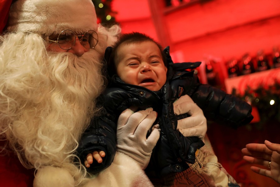 Read moreNine-month-old Carlos Ramos cries as he is held by Santa Claus (David Prados Fernandez) at La Casa de Papa Noel (Santa Claus Home) at the Real Casa de Postas in central Madrid, Spain, on December 20, 2017. Prados Fernandez, who never got the Santa Claus experience as a boy, has been working as Santa Claus in different venues for the past seven years. #