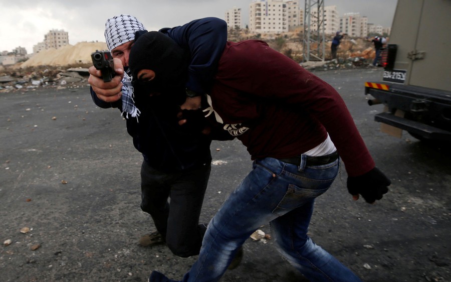 Read moreUndercover Israeli security personnel detain a Palestinian demonstrator during clashes at a protest against President Donald Trump's decision to recognize Jerusalem as the capital of Israel, near the Jewish settlement of Beit El, on December 13, 2017. Photographer Mohamad Torokman was on assignment near the Jewish settlement, close to the Palestinian hub city of Ramallah, where protests were underway. Hundreds turned out, as they had done for days following Trump's announcement. Some burned tires, others hurled stones at Israeli troops, all oblivious to the surprise military move that awaited them. "The undercover personnel were posing as Palestinian protesters and were standing behind the stone-throwers," said Torokman, who has covered clashes in the region for nearly two decades. "All of a sudden, they started to fire their pistols into the air and throw sound grenades at the same time." The din of the grenades and guns caused panic among the protesters. Torokman saw eight Israeli personnel, wearing masks fashioned from Arab headdresses or the Palestinian flag, leap into action and detain protesters. He kept photographing, capturing this moment as an undercover agent grappling with a protester swung around, briefly pointing his gun directly at Torokman. "He shouted at me and told me to go away," said Torokman, who described the atmosphere as terrifying. "I heeded his order for my own safety and I quickly moved away." #