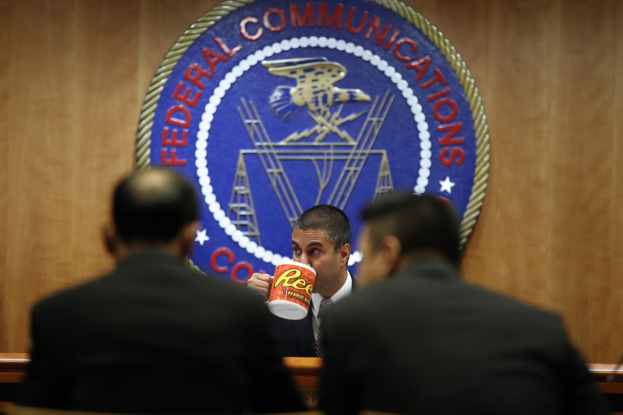 Read moreFederal Communications Commission (FCC) Chairman Ajit Pai takes a drink from an oversized mug during introductions at an FCC meeting where they voted along party lines to repeal Obama-era net neutrality regulations in Washington, D.C., on December 14, 2017. #
