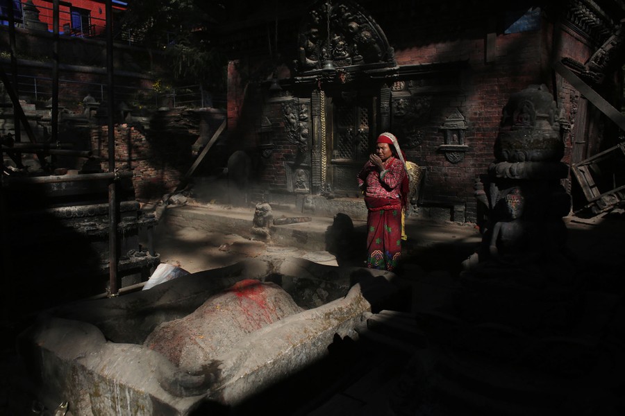 Read moreA Nepalese worker takes rest while working on the construction site of Bajrayogini Hindu temple which was damaged in the 2015 earthquake in Sankhu, Kathmandu, Nepal, on December 14, 2017. #
