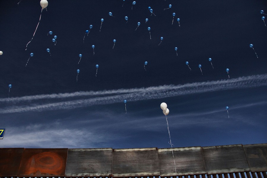 Read moreBalloons are released in the air above the border wall between Mexico and the United States, during the "Keep our dream alive" event, in Ciudad Juarez, Chihuahua state, Mexico, on December 10, 2017. Families separated by the border are reunited for three minutes through the fence that separates Ciudad Juarez Park in Mexico and Sunland in New Mexico, United States, during the event, organized by the Border Network for Human Rights on International Human Rights Day. #