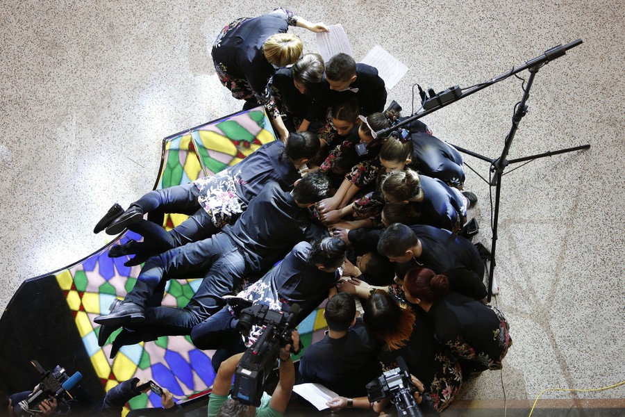 Read moreTwenty Bosnian children play "Galop Marche", a classical piece by Albert Lavignac, in an attempt to set a Guinness world record for the largest number of people performing a single composition on a piano, in Sarajevo, Bosnia, on December 12, 2017. #