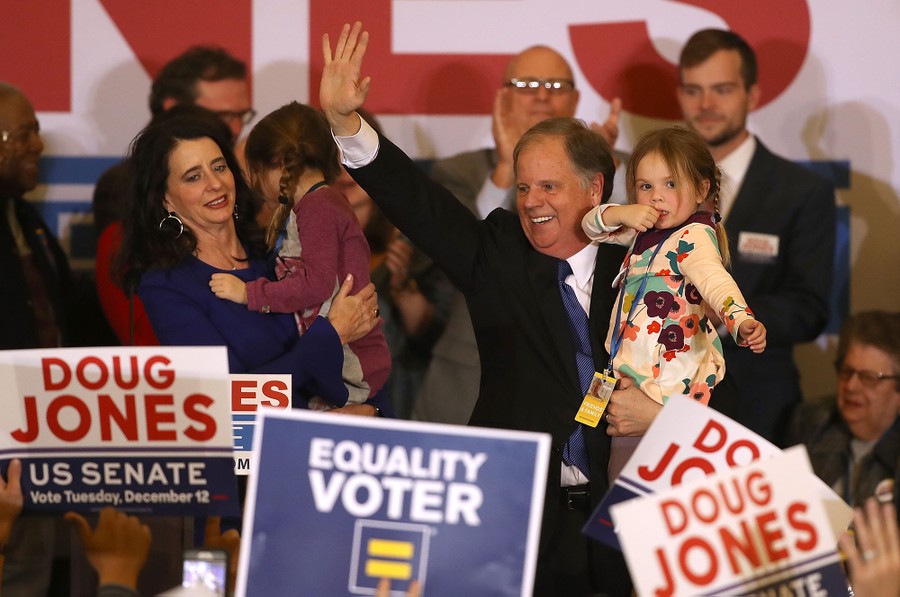 Read moreDemocratic U.S. Senator elect Doug Jones greets supporters during his election night gathering the Sheraton Hotel on December 12, 2017 in Birmingham, Alabama. Doug Jones defeated his republican challenger Roy Moore to claim Alabama's U.S. Senate seat that was vacated by attorney general Jeff Sessions. #