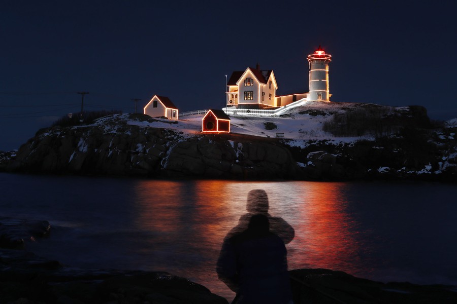 Read moreIn this long exposure shot, holiday lights reflect in the waters off Nubble Light, silhouetting photographer Michael Blanchette of Bedford, New Hampshire, on December 11, 2017, in York, Maine. The beacon on top of the lighthouse has been helping mariners navigate the coastal waters of southern Maine since 1879. #