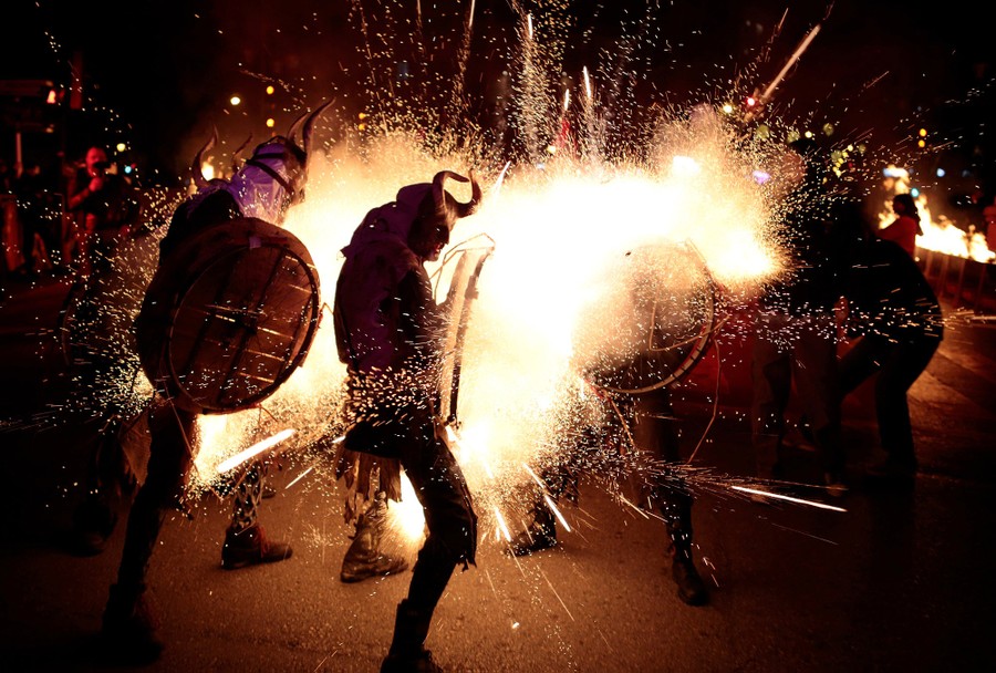 Read moreRevelers dressed as devils walk among fireworks during "Correfocs" (fire runs), traditional celebrations in eastern Spain during which people dress as dancing devils while lighting fireworks among crowds of spectators, to mark the end of the local festivities in Palma de Mallorca, Spain, on January 21, 2018. #