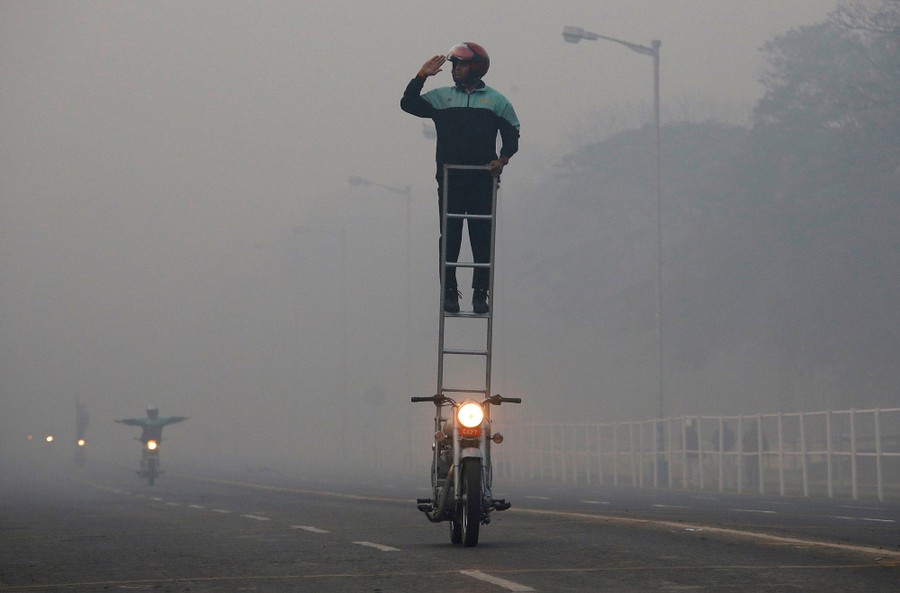 Read moreAn Indian army "Daredevils" motorcycle rider performs during a rehearsal for the Republic Day parade on a foggy winter morning in Kolkata, India, on January 21, 2018. #