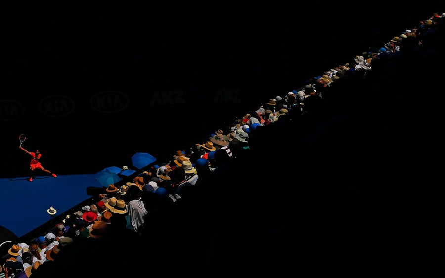 Read moreA ballkid watches Tennys Sandgren of the U.S. play against South Korea's Hyeon Chung during their men's singles quarter-finals match on day 10 of the Australian Open in Melbourne on January 24, 2018. #