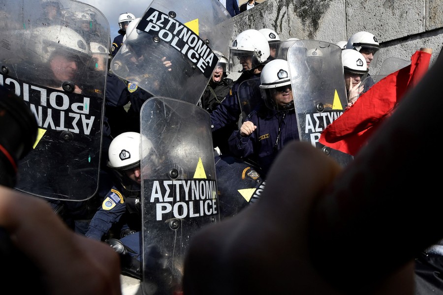 Read moreDemonstrators clash with police as they try to take the stairs leading to the parliament building in Athens, Greece, on January 12, 2018, as part of a strike wave against changes to a 36-year-old industrial action law demanded by the country's creditors. #