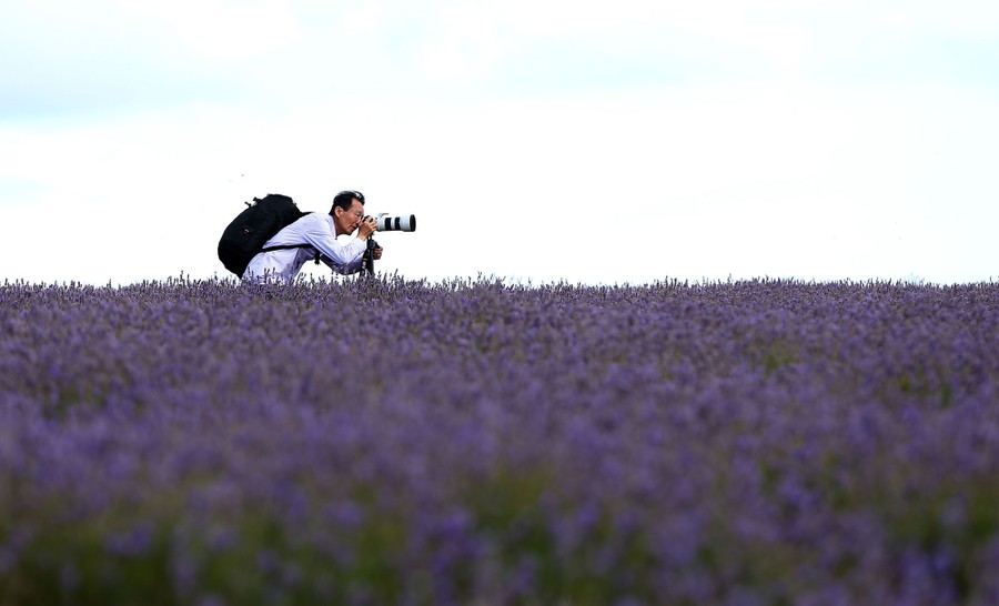 Read moreA man takes photos of the lavender rows at Bridestowe Lavender Estate on January 10, 2018, in Launceston, Australia. The estate runs over 260 acres and is the world's largest privately owned lavender farm. #