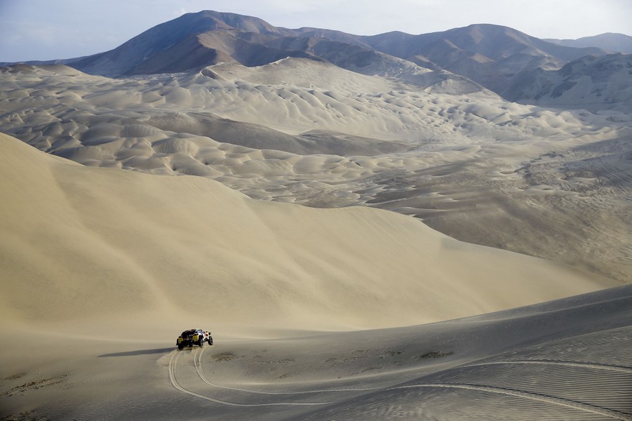Read moreDriver Stephane Peterhansel of France, and co-driver Jean Paul Cottret of France, race their Peugeot down a dune in the fifth stage of the 2018 Dakar Rally between San Juan de Marcona and Arequipa, Peru, on January 10, 2018. #