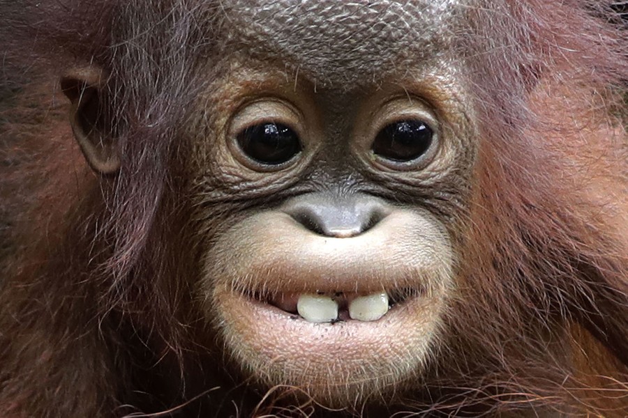 Read moreKhansa, an eight-month-old critically endangered Bornean orangutan, shows off her two front teeth at the Singapore Zoo on January 11, 2018. Khansa was the zoo's 46th successful orangutan birth. #
