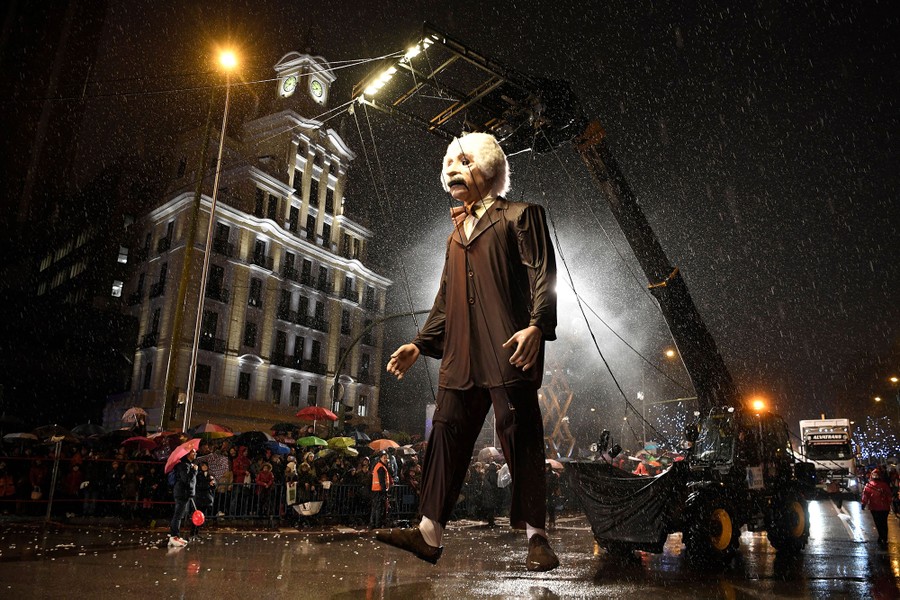 Read moreEntertainers hold a giant puppet depicting theoretical physicist Albert Einstein during the traditional Three Kings parade (Cabalgata de los Reyes Magos) marking Epiphany in Madrid, Spain, on January 5, 2018. #
