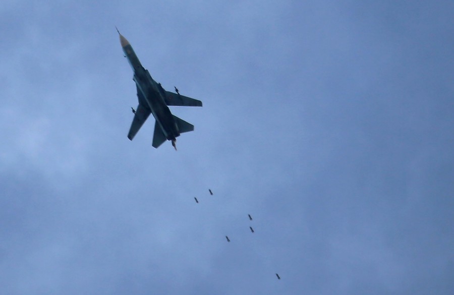 Read moreA picture taken on February 7, 2018, shows a Syrian air force MiG-23 jet dropping a payload during a reported regime airstrike in the rebel-held town of Arbin, in the besieged Eastern Ghouta region on the outskirts of Damascus, Syria. #