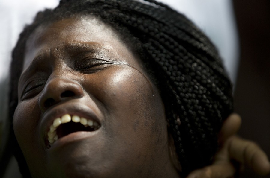 Read moreWania de Moraes grieves for her 13-year-old son, Jeremias Moraes da Silva, during his burial service in Rio de Janeiro, Brazil, on February 8, 2018. Jeremias was walking home after playing soccer on Tuesday when he was struck by a stray bullet during a police operation in the Mare slum. He died shortly after being rushed to the hospital. #