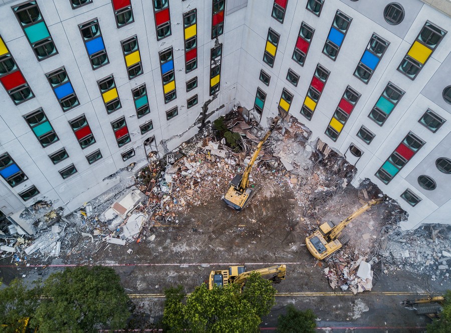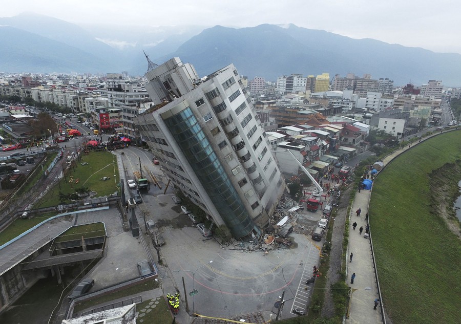 Read moreA residential building leans on a collapsed first floor following an earthquake on February 7, 2018, in Hualien, Taiwan. Rescue crews are still at work, but hopes of finding any more survivors are dwindling. Government officials have reported 12 deaths and another 270 injuries caused by the magnitude-6.4 earthquake. #