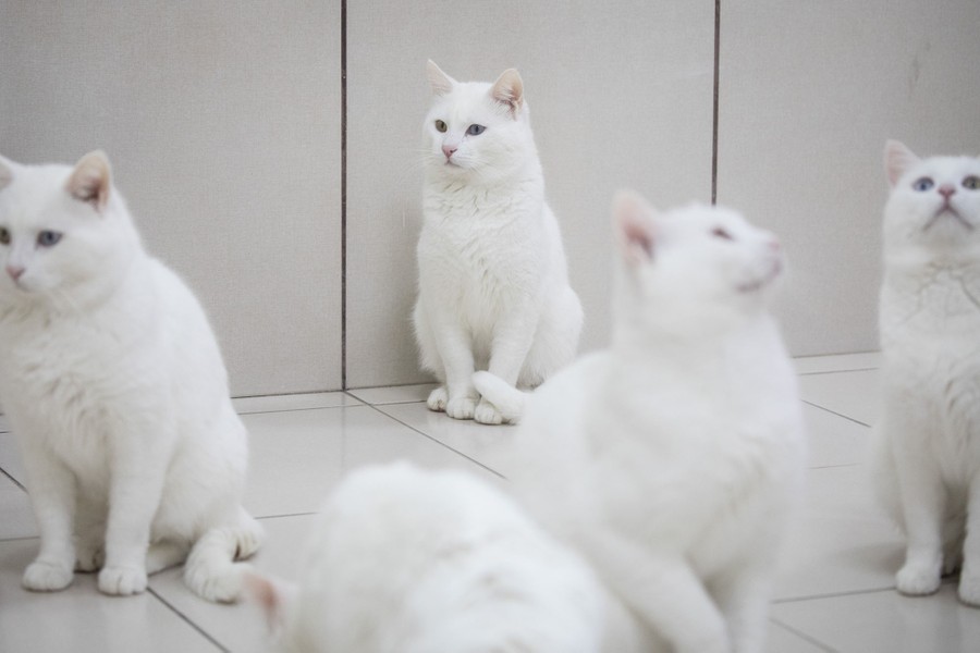 Read moreTurkish Van cats play in an enclosure at the Van Cat Research Center on February 8, 2018, in Van, Turkey. The famous Turkish Van cat is one of the oldest domestic cats known, having lived in the Lake Van region of eastern Turkey for centuries. The cat has a distinct look with an all-white coat, sometimes with a spot of color. The breed has three eye colors: blue, yellow and green, which are sometimes mismatched. The Van Cat Research Center was founded in 1992 with the objective of protecting the breed from gradual extinction. #