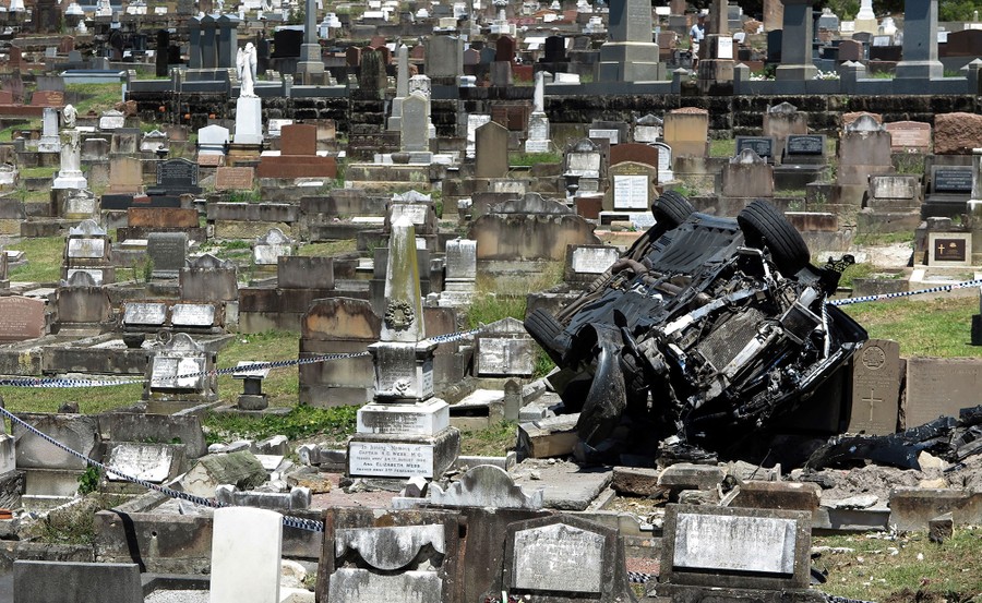 Read moreA Mercedes SUV lies among gravestones in a cemetery in the Sydney suburb of South Coogee on February 6, 2018. The early morning crash caused significant damage after the driver failed to take a corner, crashing through a wall before landing on the gravestones. Police said the driver failed a roadside alcohol breath test before going to hospital. #