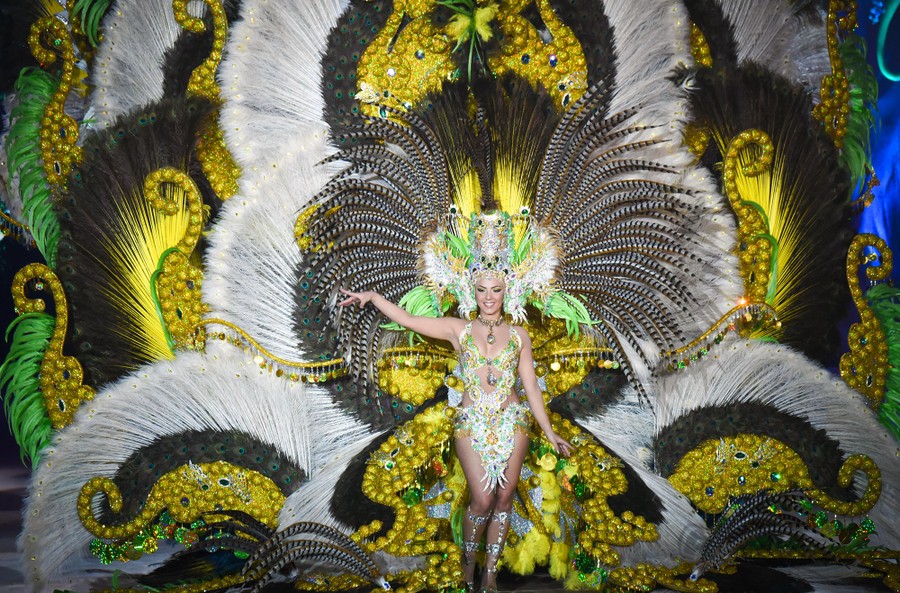 Read moreA nominee for queen performs during the main stage of the Carnival of Santa Cruz in Santa Cruz de Tenerife on the Spanish Canary island of Tenerife, on February 7, 2018. The costumes are more than five meters high and over 80 kilos in weight. The event began on January 12 and finishes on February 18 with orchestras playing Caribbean and Brazilian rhythms throughout festivities that range from elections for the Carnival Queen, the Junior Queen and the Senior Queen; to children and adult murgas (satirical street bands), comparsas (dance groups), and street performances. #