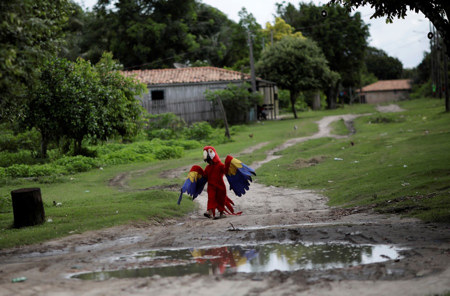 Read moreA reveller dressed in an animal costume walks to the annual block party, Bicharada, as part of pre-Carnival festivities in Cameta, in the State of Para, Brazil, on February 8, 2018. #