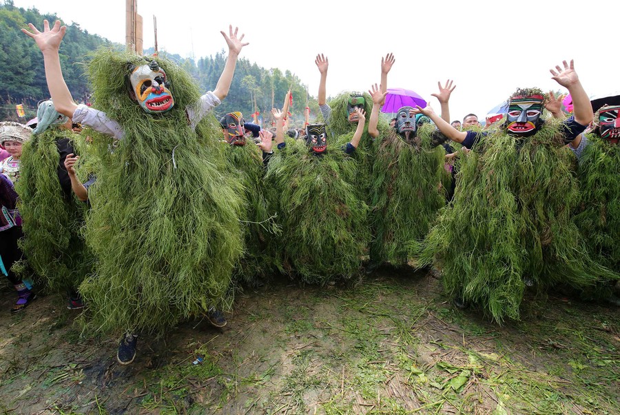 Read moreMiao ethnic people dressed as "Manghao" dance during a celebration of the Manghao Festival in Rongshui Miao Autonomous County, Liuzhou, Guangxi Province, China, on March 4, 2018. #