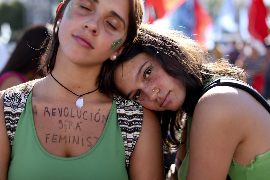 Read moreA woman wears a message on her chest that reads "the revolution will be feminist" during a demonstration celebrating International Women's Day in Buenos Aires, Argentina, on March 8, 2018. Tens of thousands of people gathered in Argentina's capital to condemn violence against women while commemorating International Women's Day. #