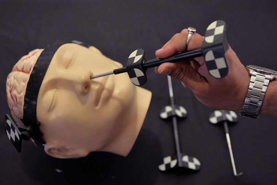 Read moreA medical practitioner uses a camera-based navigational system on a dummy used in medical diagnosis by ENT specialists during Cholesteatoma 2018, an international seminar and workshop for ENT specialists, in Bangalore, India, on March 9, 2018. #