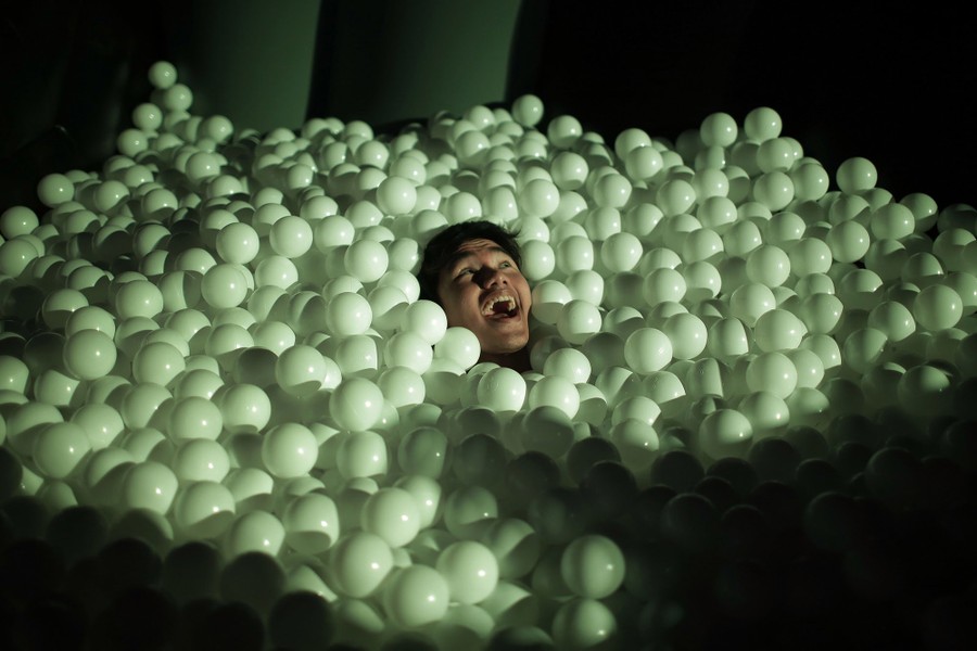 Read moreA man is partially submerged in a ball pit on March 8, 2018, in Singapore. The Art-Zoo Inflatable Park is part of the i Light Marina Bay festival, which showcases large-scale creative installations within the urban city space. #