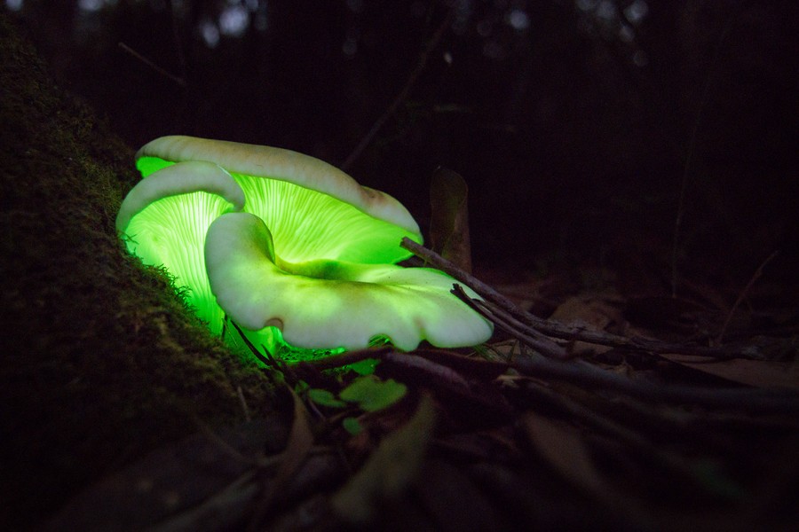 Photos of the Week: Great Bustard, Shinmoedake Volcano, Ghost Mushrooms