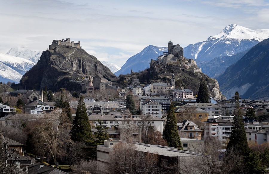 Read moreA view of Sion in western Switzerland shows Tourbillon Castle (left) and Valere Basilica fortified church (right), overlooking the city on April 2, 2018. Sion is one of seven cities that have expressed official interest in hosting the 2026 Olympic Winter Games. #