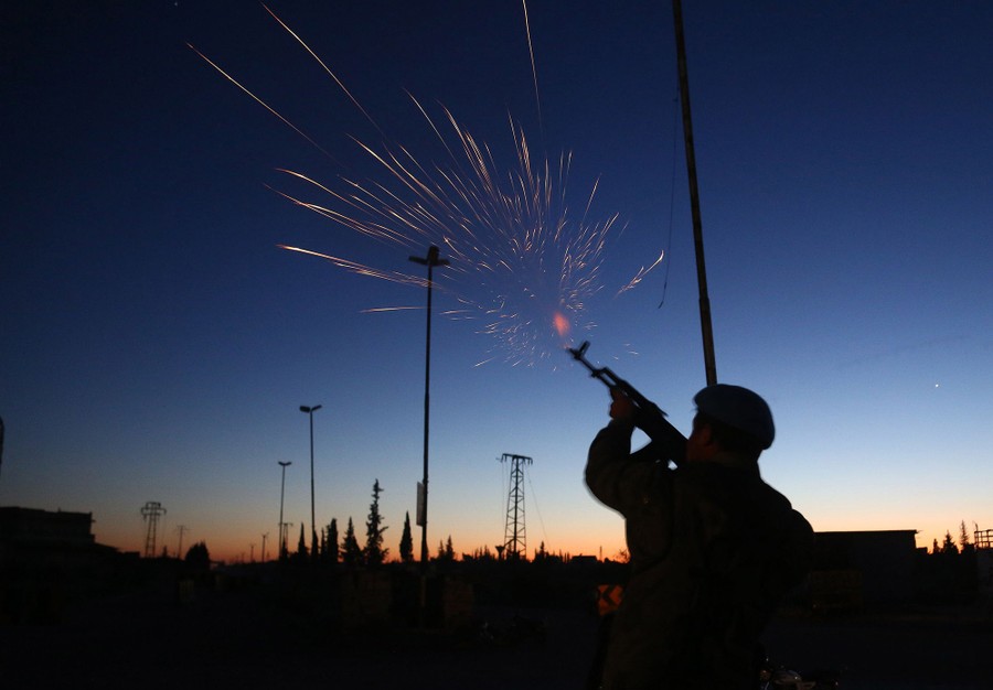 Read moreA Turkish-backed rebel fighter fires as buses arrive at the Abu al-Zindeen checkpoint near the northern Syrian town of al-Bab. They were transporting Jaish al-Islam fighters and their families from the former rebel bastion's main town of Douma after being evacuated from the last rebel-held pocket in Eastern Ghouta on April 3, 2018. Russian-backed regime forces have retaken control of 95 percent of Eastern Ghouta since February 18 through a combination of a deadly air and ground assault and evacuation deals. #