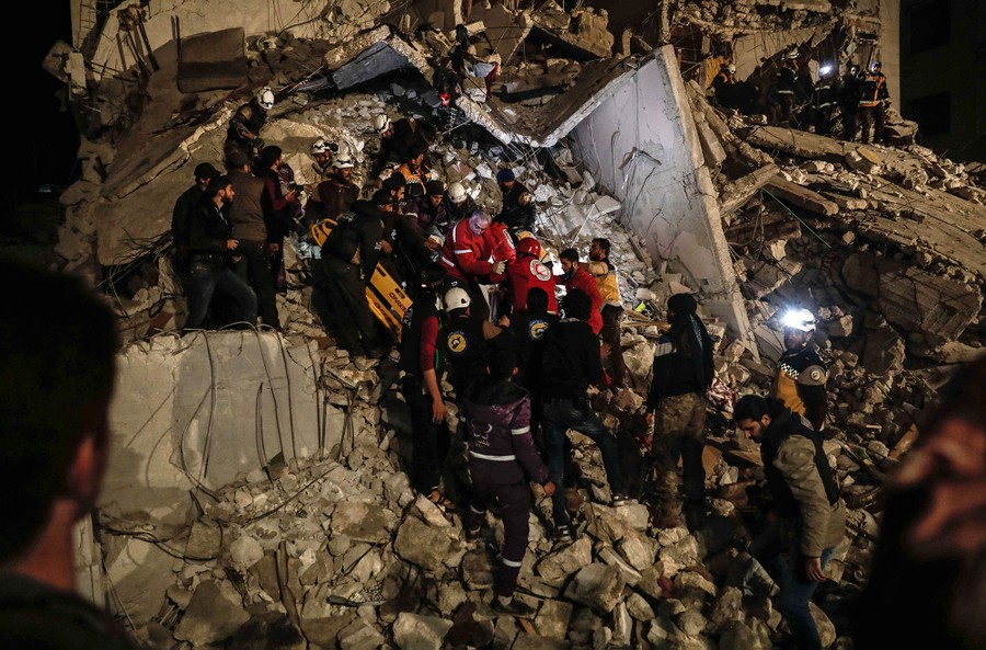 Read moreSyrian Civil Defense volunteers and Red Crescent members evacuate survivors following an explosion in the rebel-held city of Idlib on April 9, 2018. A huge blast killed at least 13 civilians in Syria's northwestern jihadist-held city, a monitor said, as an AFP reporter said it wrecked a multi-story building. #