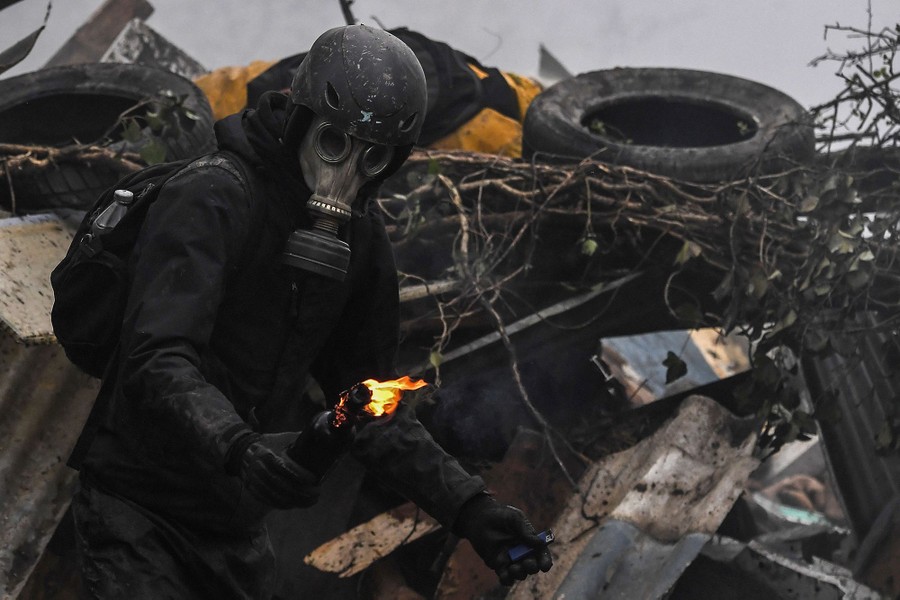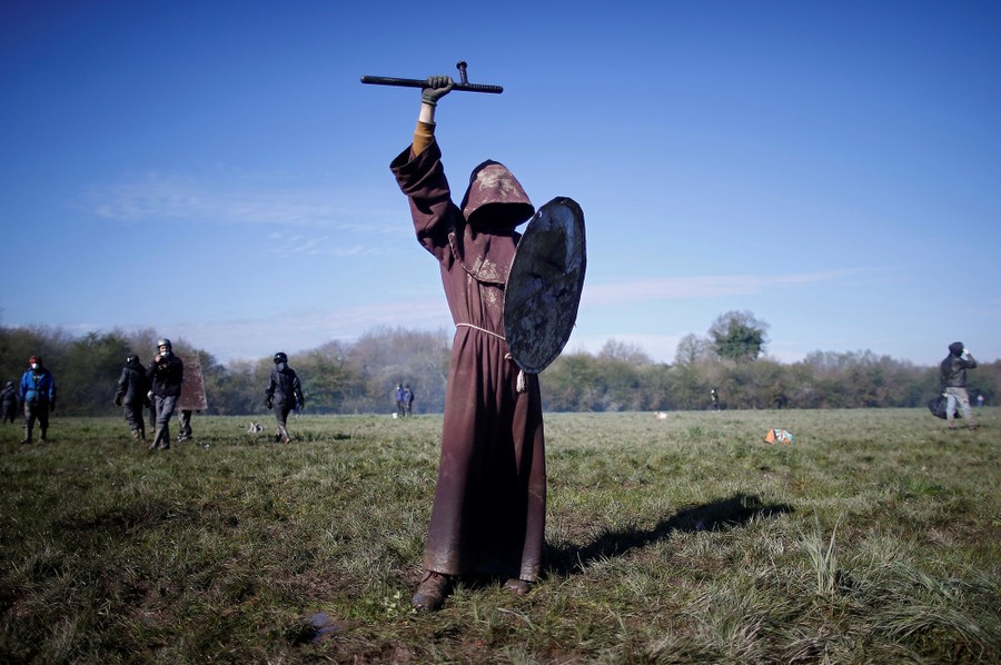 Read moreA protester holds a French gendarme's baton and shield during the evacuation operation in the zone ZAD at Notre-Dame-des-Landes, near Nantes, France, on April 11, 2018. #