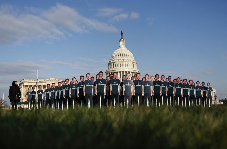 Read moreSofia Latif, with the advocacy group, Avaaz, walks past a display of life-sized cutouts depicting Facebook CEO Mark Zuckerberg wearing "Fix Fakebook" T-shirts on the southeast lawn of the Capitol on Capitol Hill in Washington, D.C., on April 10, 2018. This photo takes place ahead of Zuckerberg's appearance before a Senate Judiciary and Commerce Committees joint hearing. #