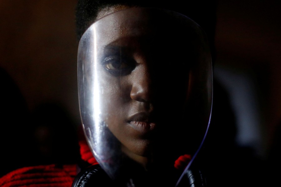Read moreA model holds a protective mask over her face while preparing backstage before designer Fatima Lopes's Fall/Winter 2018/19 collection show in Lisbon, Portugal, on April 7, 2018. #