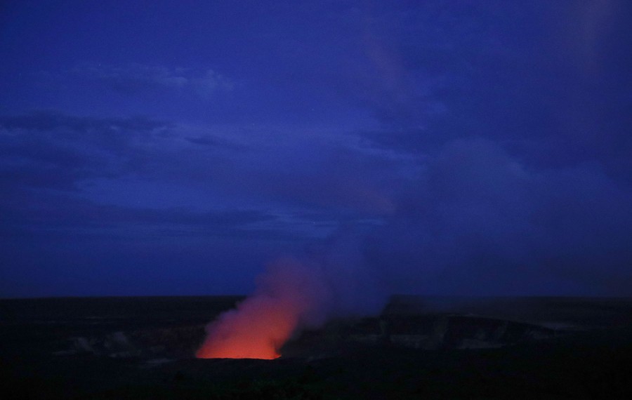 Read moreKilauea's summit crater glows red in Volcanoes National Park, Hawaii. on May 9, 2018. Geologists warned on Wednesday that Hawaii's Kilauea volcano could erupt explosively and send boulders, rocks, and ash into the air around its summit in the coming weeks. #