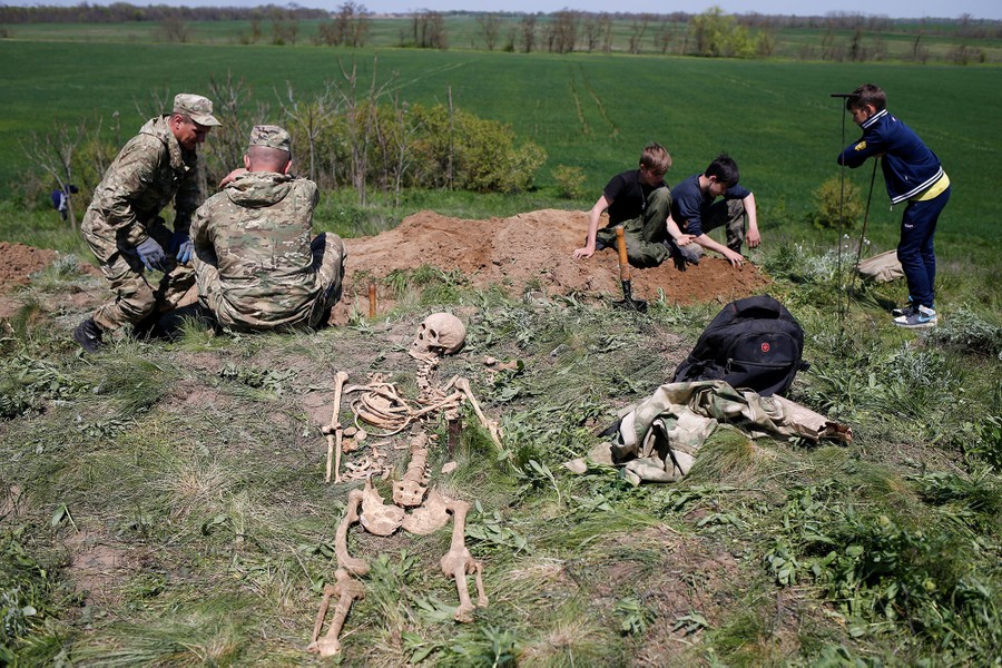 Read moreMembers of a search team work at an excavation site where the remains of Red Army soldiers killed in World War Two were found, near the village of Didymkin in Stavropol region, Russia, on April 26, 2018. In a week of searching, the group formed by military, members of military-patriotic camps, and volunteers, found the remains of 12 soldiers. #