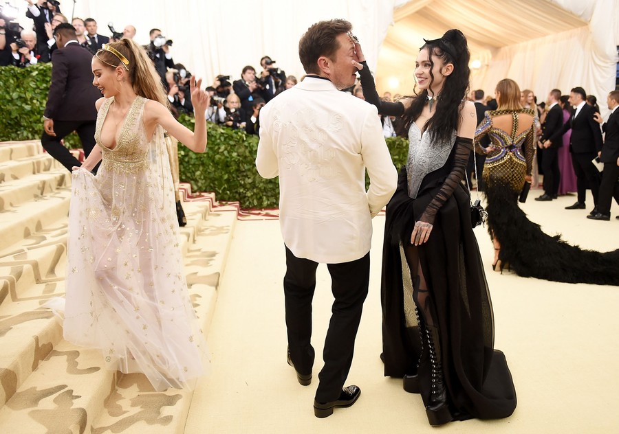 Read moreGrimes (right) and her boyfriend (Elon Musk, center) attend the "Heavenly Bodies: Fashion & The Catholic Imagination" Costume Institute Gala at The Metropolitan Museum of Art on May 7, 2018, in New York City. Fellow attendee Alexandra Parker ascends the stairs at left. #