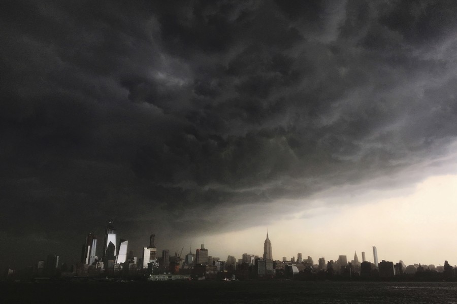 Read moreIn this Tuesday, May 15, 2018, photo, storm clouds gather over New York City, seen from the Hudson River. A line of strong storms pushed across New York City and badly disrupted the evening commute, stranding thousands of train riders. #