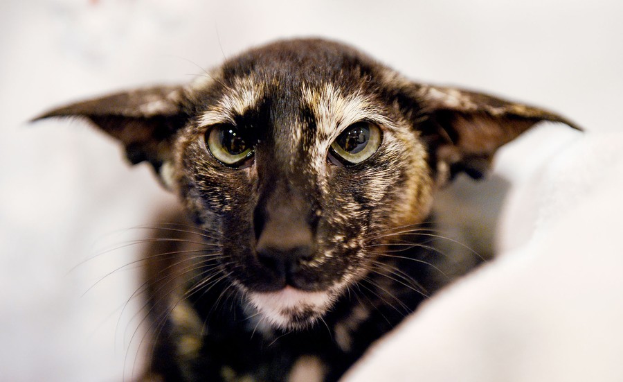 Read moreFiordiliso Satanic Verses, an Oriental Shorthair cat, photographed at the Merseyside Cat Club GCCF All Breeds Championship Show at Sutton Leisure Center in St. Helens, England, on June 2, 2018. #