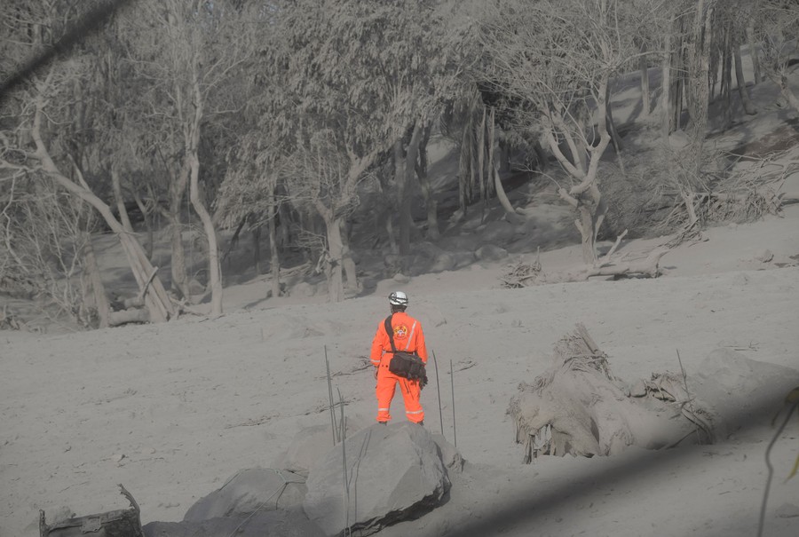 Read moreA firefighter searches along with other firefighters for their missing colleague in an area affected by the volcanic eruption in Alotenango, Guatemala, on June 5, 2018. #