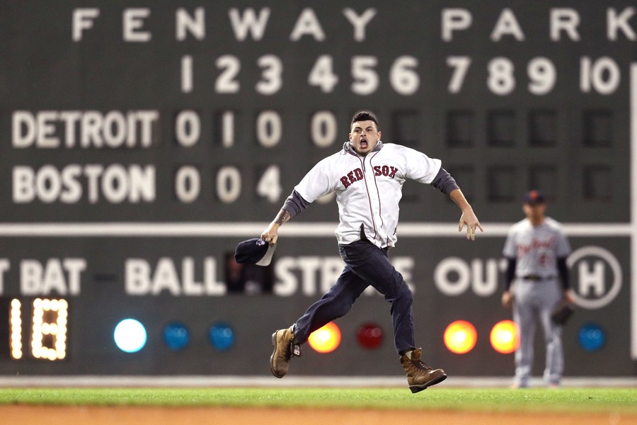Read moreA fan rushes the field during the fifth inning of the game between the Boston Red Sox and the Detroit Tigers at Fenway Park on June 6, 2018, in Boston, Massachusetts. #