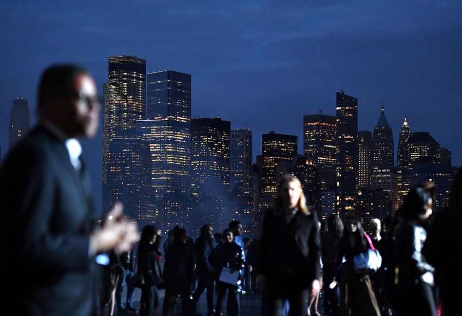 Read moreGuests stand on the runway in front of the Manhattan skyline before the Saint Laurent Men's Spring/Summer 2019 collection during a runway show in Liberty State Park on June 6, 2018, in Jersey City, New Jersey. #