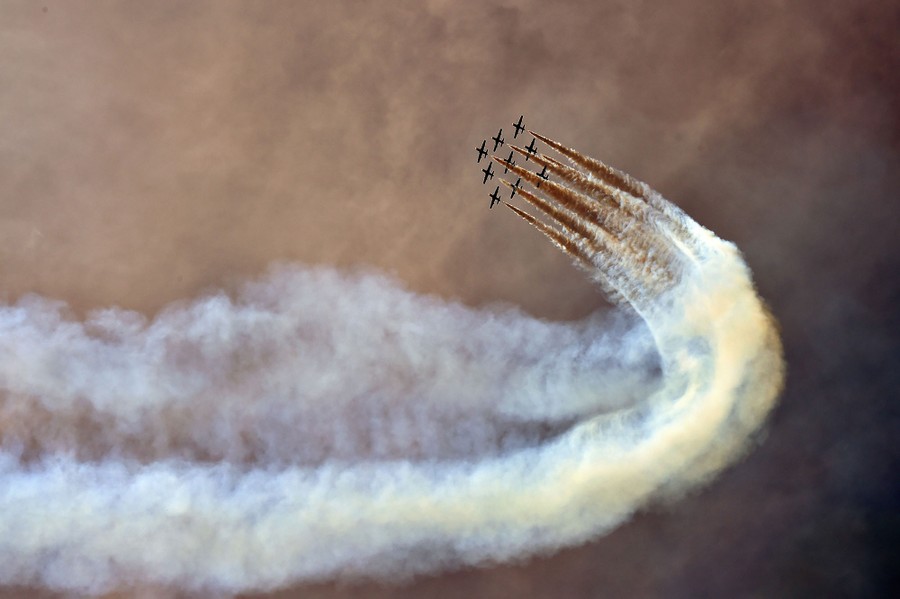 Read moreThe Italian air force aerobatic unit Frecce Tricolori (Tricolor Arrows) prepares to spread smoke with the colors of the Italian flag prior to the Moto GP Grand Prix at Mugello race track on June 3, 2018. #
