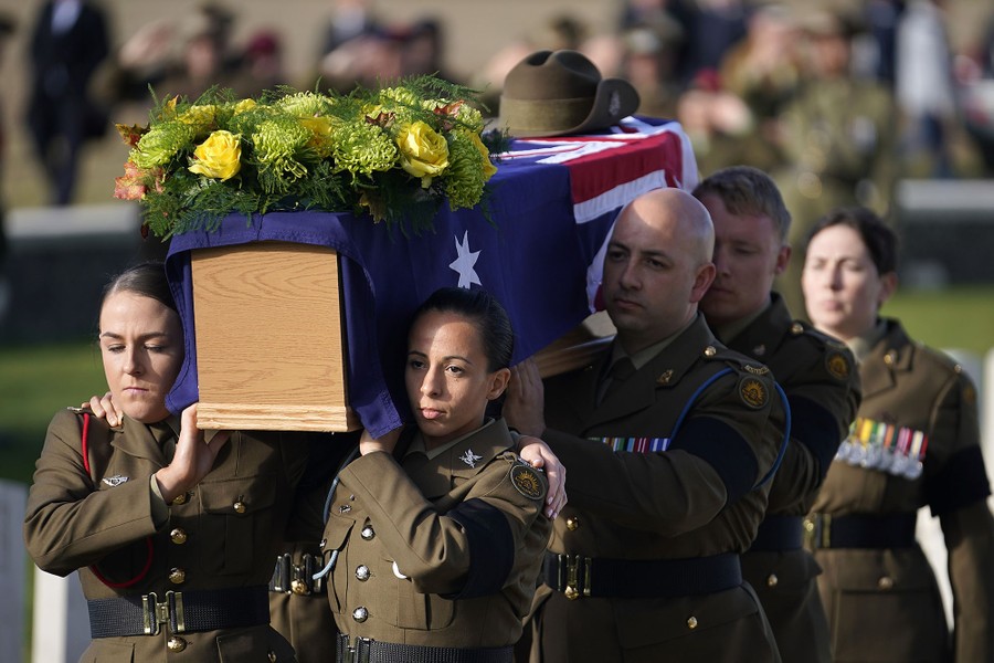 Read moreThe body of an unknown Australian World War I soldier is laid to rest in Tyne Cot Military Cemetery on November 6, 2018, in Ypres, Belgium. Two Australian and one British unknown soldier were buried with full military honors during a commemoration service. The soldier of the Lancashire Fusiliers, who was killed in the battle of Passchendaele 101 years ago, was found lying next to his Australian comrades in what is believed to be a shell hole, during civil-engineering work on a road leading to the Tyne Cot Cemetery in May of 2016. #