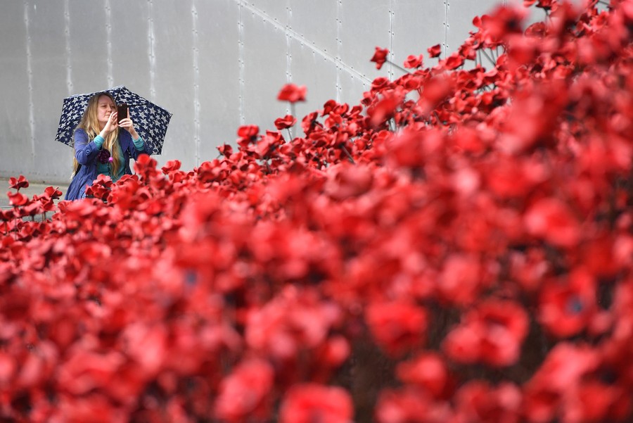 Read moreA woman photographs the iconic poppy sculpture "Wave" as it opens at IWM North, its final presentation as part of 14-18 NOW's U.K.-wide tour of the poppies, on September 7, 2018, in Manchester, England. #